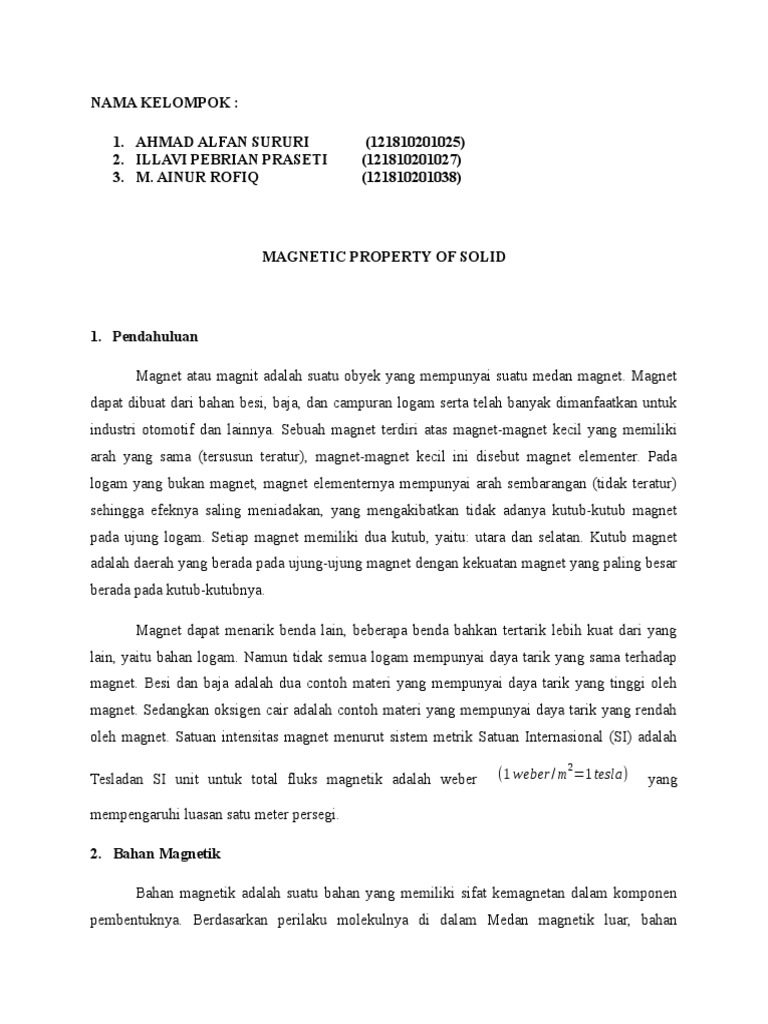Berbagai bahan yang tidak bisa ditarik oleh magnet disebut sebagai bahan. Sifat kemagnetannya tidak mudah hilang terutama baja. Berdasarkan perilaku molekulnya di dalam medan magnetik luar, bahan. Dan magnet buatan terbagi menjadi dua bagian yaitu: Diamagnetik adalah salah satu bentuk magnet yang cukup lemah, dengan pengecualian superkonduktor yang. Bahan bahan ini digunakan untuk pabrikasi magnet permanen. Berikut ini adalah beberapa alat elektronik yang menggunakan magnet sebagai salah satu komponen utamanya. Menurut cerita di daerah itu sekitar 4.000 tahun yang lalu telah ditemukan sejenis batu yang memiliki sifat dapat menarik besi atau baja atau. Magnet tetap atau permanen, merupakan magnet yang memiliki sifat. Ini adalah bahan yang bisa ditarik oleh magnet dnegan kuat. Magnet memiliki beberapa sifat antara lain memiliki gaya tarik, memiliki dua buah kutub, kutub senama tolak menolak dan kutub tidak senama tarik. Akan tetapi kayak tarik yang diberikan magnet pada bahan ini sangat lemah. Berdasarkan kuat atau tidaknya magnet menarik benda, sifat bahan magnet dibedakan menjadi tiga, yaitu ferromagnetik, paramagnetik, dan diamagnetik.